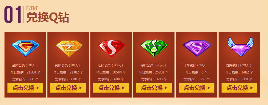 5、限量Q钻、道具每日9点刷新,数量有限,先到先得。页面中显示的剩余数量会有一定时间的延迟,请以实际剩余数量为准;