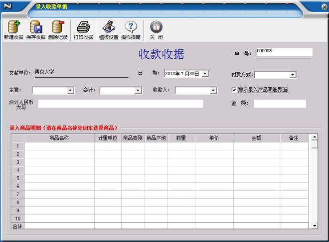 9、支持有明细和无明细收据打印,支持统一收款收据和非统一收款收据打印!