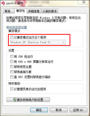 部分玩家使用Win7系统无法更新,请点击右键属性,兼容性中设置以兼容运行这个程序